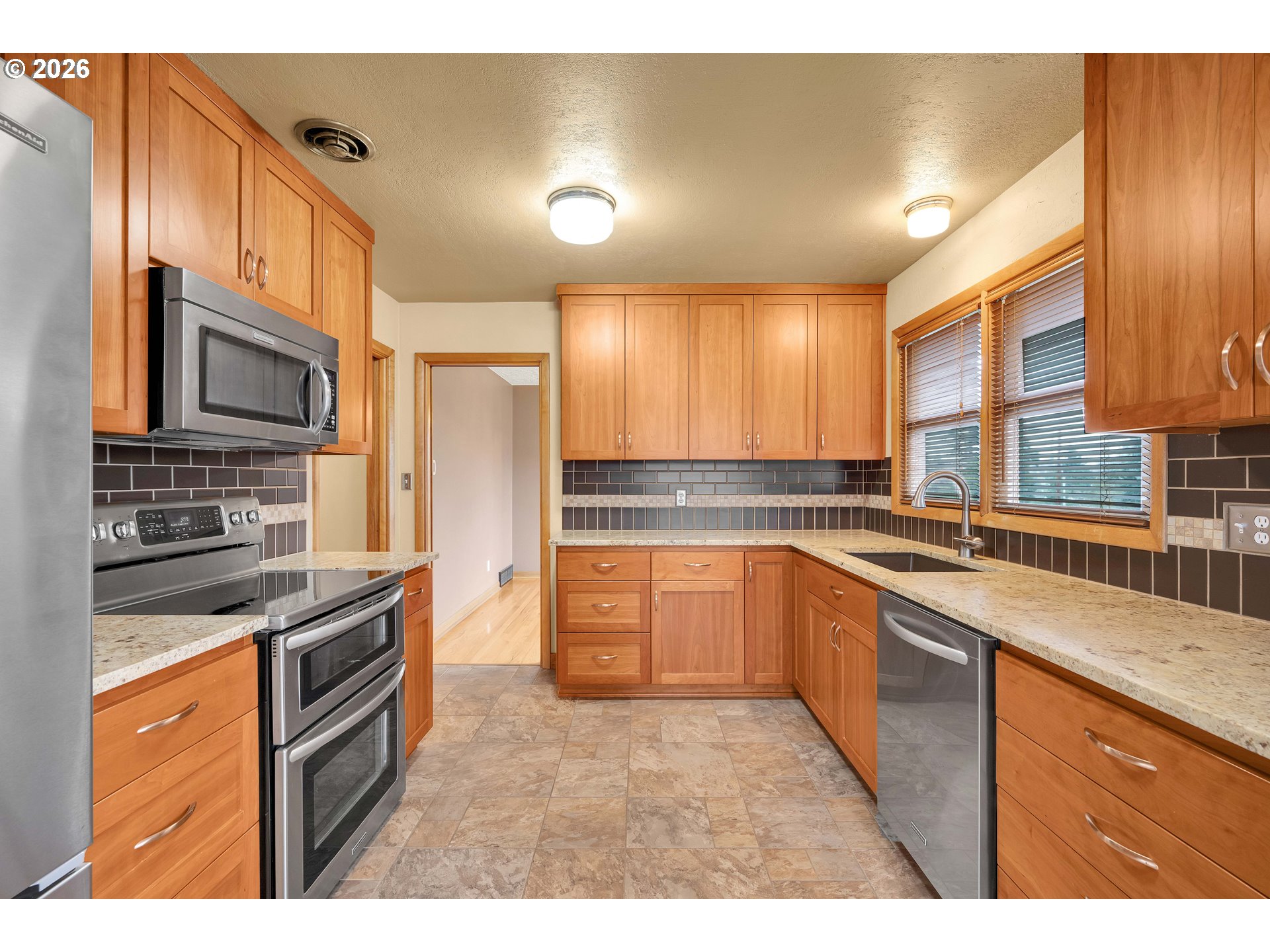 This beautifully maintained daylight ranch offers the perfect blend of comfort, functionality, and style. Featuring three spacious bedrooms and two full bathrooms, this home provides a thoughtful layout ideal for both everyday living and entertaining. Natural light pours into the main living areas, highlighting the rich hardwood floors that add warmth and character throughout the home.The updated kitchen is a standout feature, complete with modern cabinetry, sleek countertops, and ample workspace for cooking. Whether preparing a quiet weeknight dinner or hosting friends and family, this kitchen is designed to impress. Situated on a desirable corner lot, the property offers added privacy, extra yard space, and great curb appeal. The daylight lower level provides additional living flexibility—perfect for a family room, home office, and guest retreat.With its classic ranch-style design, tasteful updates, and prime corner location, this home delivers comfort, charm, and convenience in one exceptional package. Don’t miss the opportunity to make this move-in-ready property your next home. [Home Energy Score = 5. HES Report at https://rpt.greenbuildingregistry.com/hes/OR10238837]
