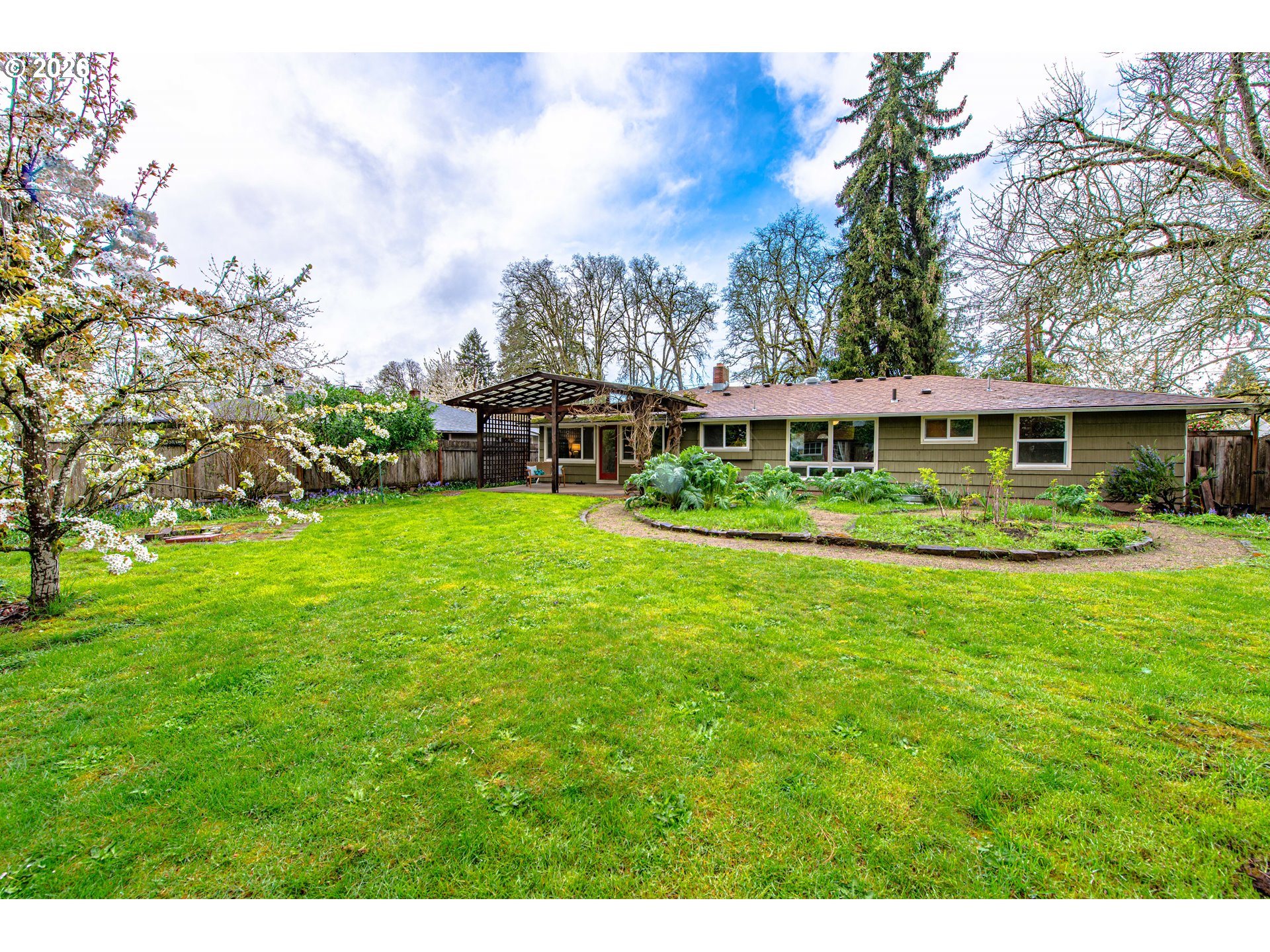 Located in the highly desirable Ferry Street Bridge neighborhood with easy access to schools, shopping, the bike path, and the Willamette River. This charming one level home features refinished hardwood floors throughout, beautiful and large windows, quality wood cabinetry in the kitchen and family room built-ins, and three spacious bedrooms with an abundance of interior storage. Enjoy outdoor living with a modern covered patio, large fenced yard with double gate access that can be used for RV parking, garden shed, and chicken coop.